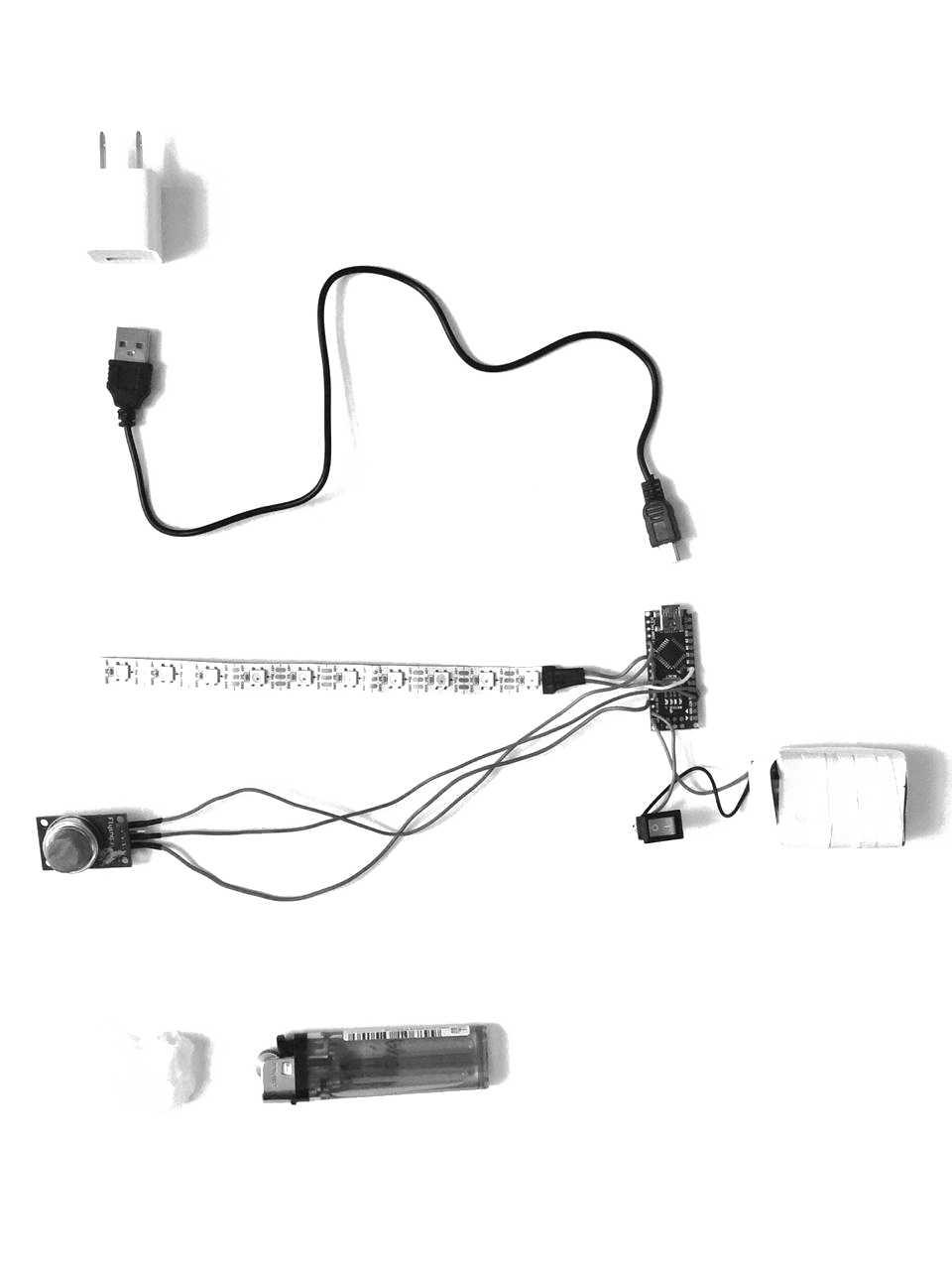En caso de una emergencia, cuenta con un sensor de gas integrado, que detecta las partículas de humo en el ambiente, enviando información al arduino para que efectué el ajuste de temperatura de color a luz ámbar, para así, lograr una visión más nítida en el espacio y agilizar la evacuación del lugar.